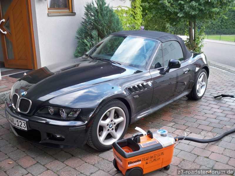 Nach dem Italienurlaub war das Verdeck extrem verunreinigt. Da man so nicht fahren kann hat sich meine Frau Karin der intensiven Reinigung und Neuimpregnierung angenommen.