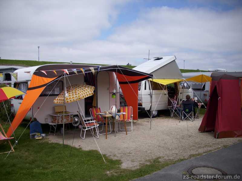 TE King und Bus mal aufgebaut. Im Vordergrund das Toilettenzelt