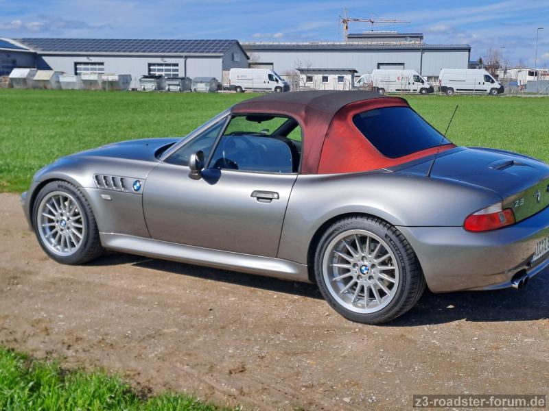 der Verdeckstoff ist vom Mercedes SLR und sieht je nach Lichteinfall anders aus.