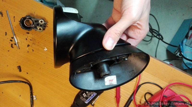 Gekürzter Sockel des BMW Mini Cooper Außenspiegel R50/R53. Hier wurde die Feder sowie der Sockel entfernt.