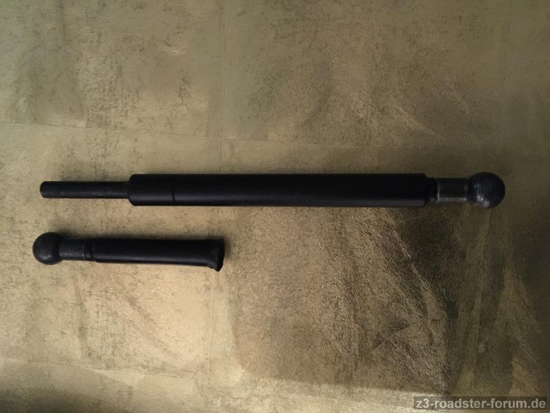 Einbau dauerte 15 min als nicht Profi. Die Gasdruckfeder wird oben und unten auf die Kugelhalterungen gedrückt. Fertig.