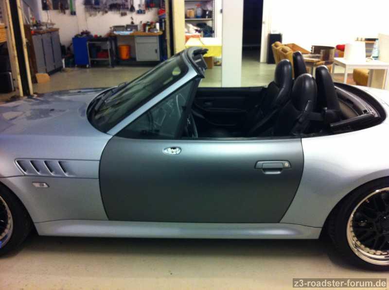 So die Folierung hat begonnen. Es ist jetzt die Farbe: "Coalgrey Matt Metallic" der Firma Bruxafol. Je nach Lichteinfall ein Traum