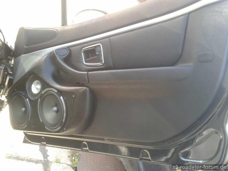 mit Doorboards (die Netzabdeckungen der Lautsprecher fehlen fürs Foto). Bestückt mit Focal und Radical Lautsprecher. Dekorleiste (wie Mittelkonsole) in Titanbsilber lackiert