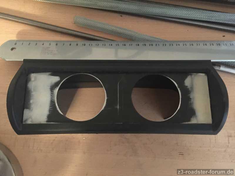 Ich habe den mittleren Lüftungsschacht entkernt, nur die vier Halterungen um den Lüftungsschacht wieder einzuclipsen hab ich stehen lassen. Dann eine fertige Schablone für zwei Zusatzinstrumente eingepasst. Es musste rechts und links noch etwas angeschweißt werden. Ich bin mir noch nicht sicher ob ich den Überstand zur Schablone noch füllen soll, oder ob ich es so lackieren soll. Über den weiteren Fortschritt der Arbeiten werde ich berichten. Der Winter ist ja noch lange.
