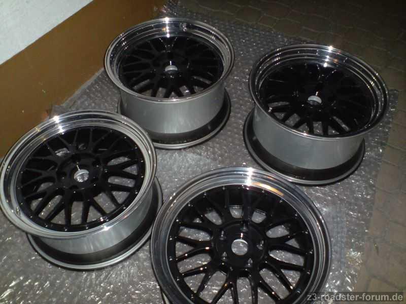 So, jetzt sind Felgenstern und Innenteil der Felgenschüssel in Wagenfarbe lackiert. Nun noch die Polierung der Stirnfläche des Felgensterns (Zwischenräume der Speichen bleiben in Wagenfarbe)
