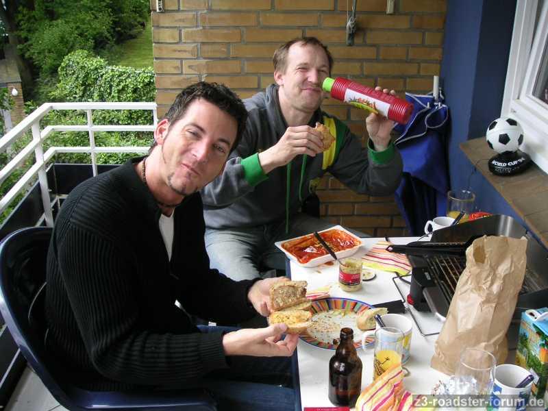 Moin! Das ist HH: um 6h in die Kiste um 13h aufgestanden: frische Brötchen am So - kein Problem. Ah da ist ja noch der Griller! Also Kotelett ins Brötchen und Pils dazu!