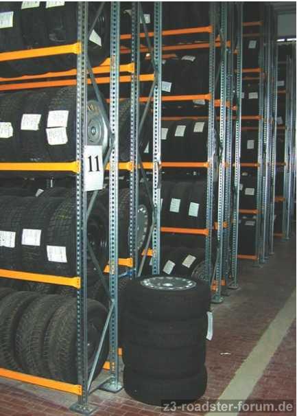 Mit einem Reifenregal könnt Ihr in Eurer Garage den toten Raum oberhalb der Motorhaube sinnvoll ausnutzen. Die Kosten fürs Regal amortisieren sich sehr schnell, wenn Ihr die Reifen nun nicht mehr beim Reifendienst einlagern müsst.