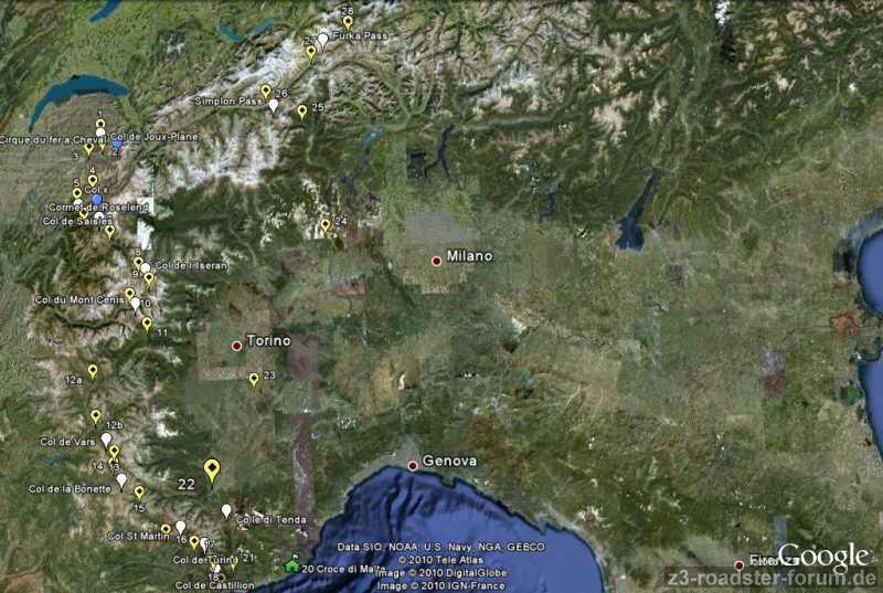 Von Thonon les Bains durch die französichen Alpen zickzack gen Süden nach Imperia und zurück über Colle di Tenda-Turin-Simplon- Furka... nach Hause