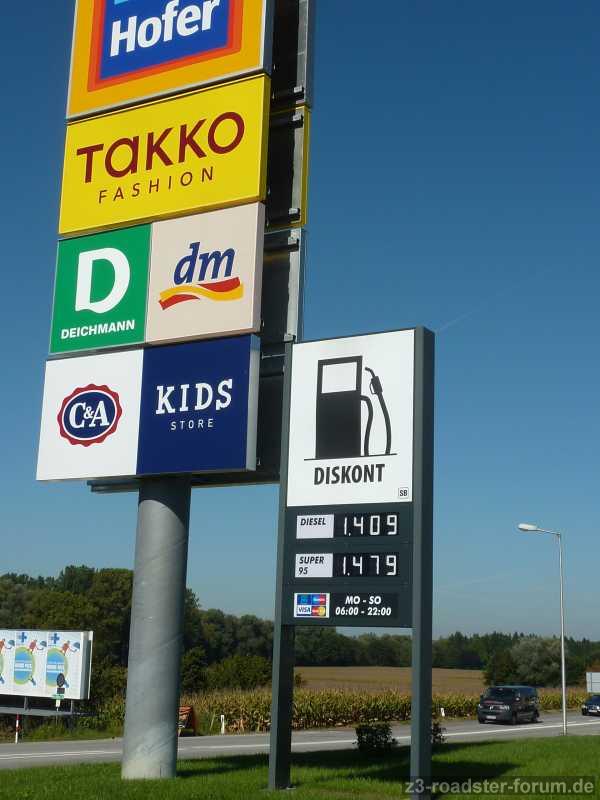 Schärding. Der Liter 30 Cent billiger als bei uns zur Zeit!!!