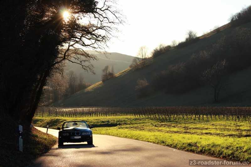 Das ist am Kaiserstuhl, dem kleinen Vulkangebirge in der Rheinebene zwischen Freiburg und Frankreich. Wärmste Ecke Deutschlands. Der Umfang beträgt ca.46km, quer durch gibt es einige sehr kurvenreiche und bergige Strecken die auch bei Rennradfahrern sehr beliebt sind. Auch ein zum Worldcup zählendes Rennen findet jährlich statt. Das Bild ist von Oberbergen nach Schelingen durch die einmaligen und weltbekannten Trockenrasen-Hügel (Naturschutzgebiet) aufgenommen.