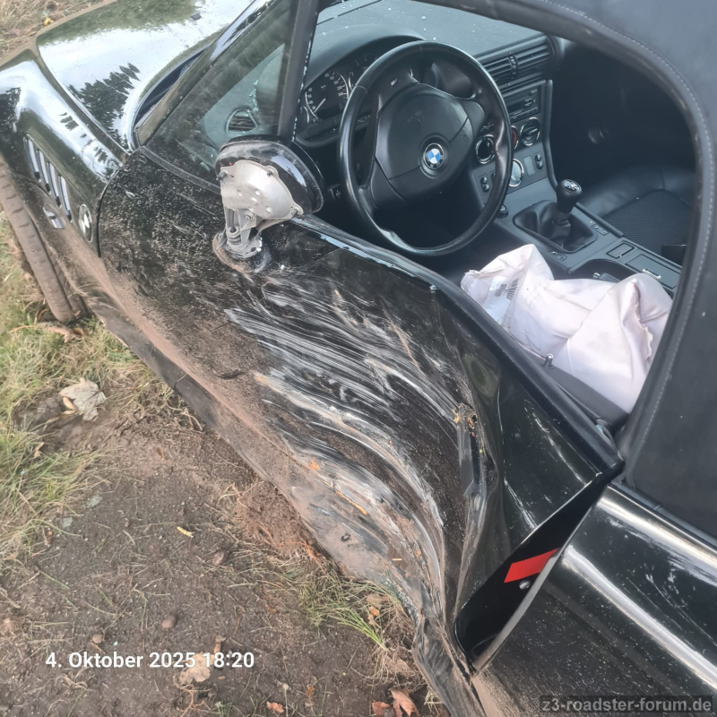 am 4.10. landete mein Z3 am Baum, das wars dann. Glücklicherweise gab es nur geringen Personenschaden. Das hätte übel ausgehen können. Ich werde jetzt nach und nach die Teile ins Forum stellen. Wenn jemand vorab schon Anfragen für Teile hat, bitte schreiben. Es war ein 1999 1.9 facelift in schwarz.