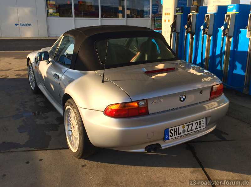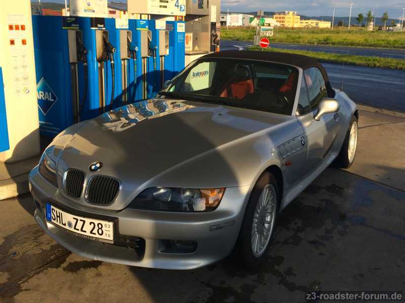 Ich würde euch gerne noch ein anständiges Bild präsentieren. Aber das einzige, was ich bis jetzt habe, ist ein Schnappschuss an der Tanke während der ersten Befüllung. Anschließend musste ich vor einer schwarzen Wolke in die Garage flüchten...