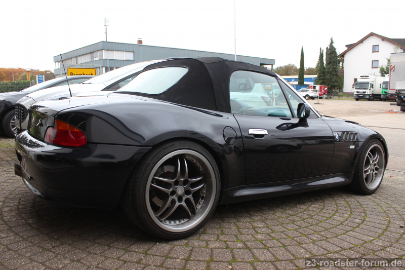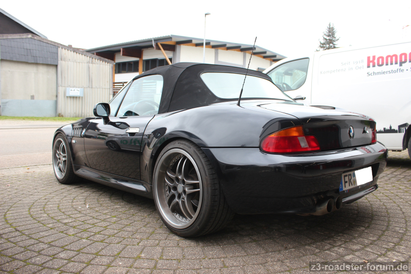 Tieferlegungsfedern und 18" Felgen, deshalb auch Radhausschalen beschnitten und Kotflügelkante hinten angelegt, originale 16" Räder vor Ort.