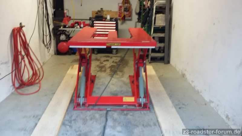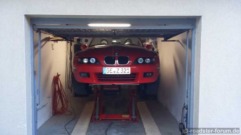 Nutzung in der Garage funktioniert (siehst ja meine Garage zum Teil im Hintergrund); musst halt nur gucken, wie hoch Du das entsprechende Auto heben kannst.