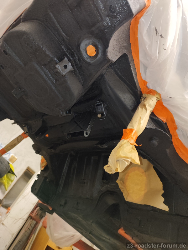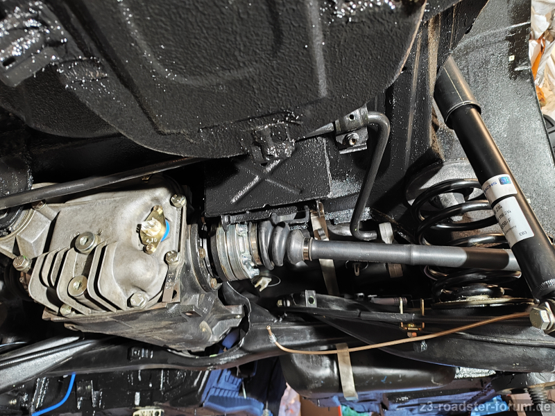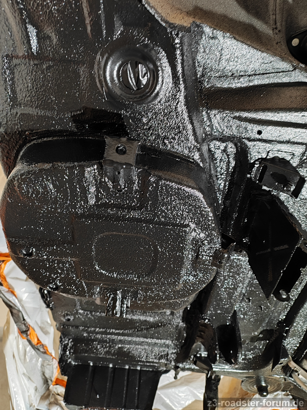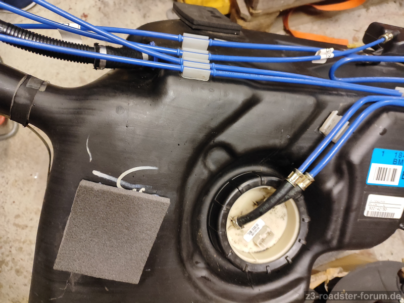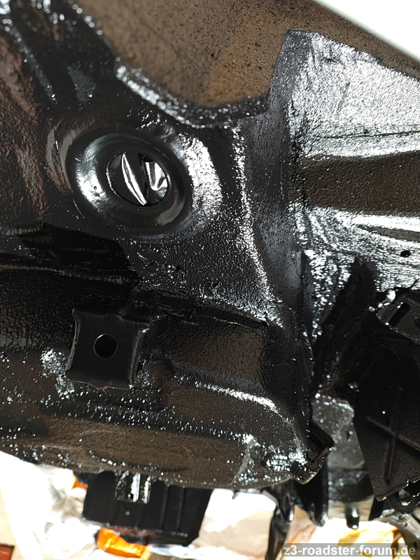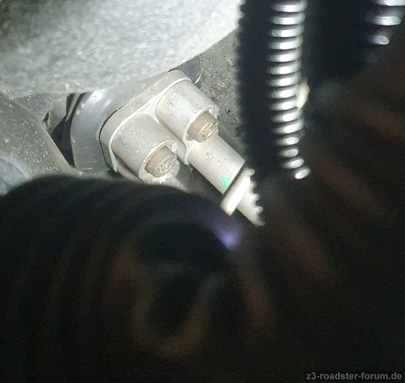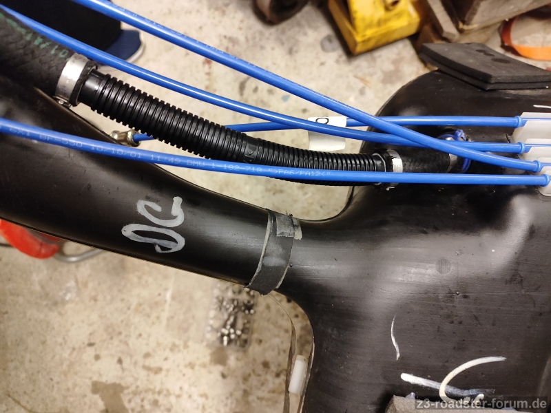 Die umlaufende Gummi-Lippe sieht aus, als sitzt sie nicht richtig worauf; aber die Saug/Druckleitungne sind starr, dh weiter zur Spritzwand kann das Doppelrohr (64538397714) eigentlich gar nicht mehr.