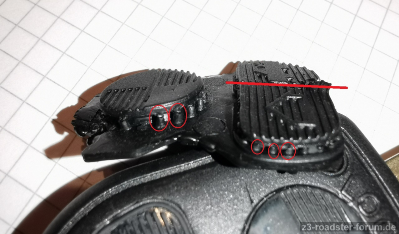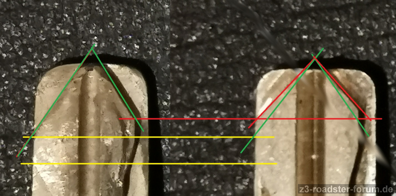 Vielmehr ist nun vermutlich doch die Spitze der Klinge der Auslöser. Original: abgerundet, flacherer Winkel zur ersten Codierung; Neu: saubere senkrechte scharfe Kanten, steiler Winkel zur ersten Codierung