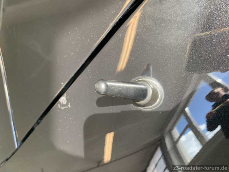 Der Lack war auch schön, allerdings sind mir da 1-2 Stellen aufgefallen, an denen es so aussieht, als ob die Farbe unter dem Klarlack Risse bekommt und so bisschen aussieht wie ein Schildkrötenpanzer. Wenn man mit der Hand rüberfährt fühlt es sich aber total glatt an. Ich hänge dazu ein Bild an, da sieht man im Vordergrund auch noch eine kurze Antenne. Ist das ein Originalteil? Habe ich noch nie gesehen...