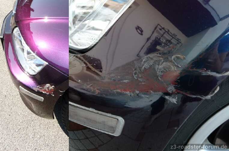 Summasummarum hatte ich jetzt schon 3 Einschläge, der erste war vor 7 Jahren ein Fasan, den mein rechter Radkasten vorne magisch anzog.