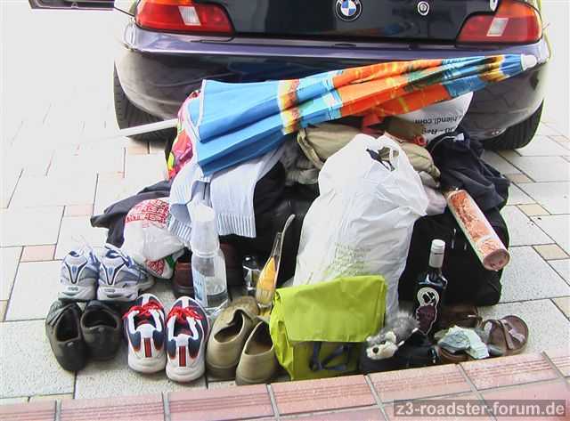 Man muss nur den Platz geschickt ausnutzen. Zur Not kann man ja mit geschlossenem Verdeck fahren - dann ist hinten im Verdeckkasten auch noch viel Platz.