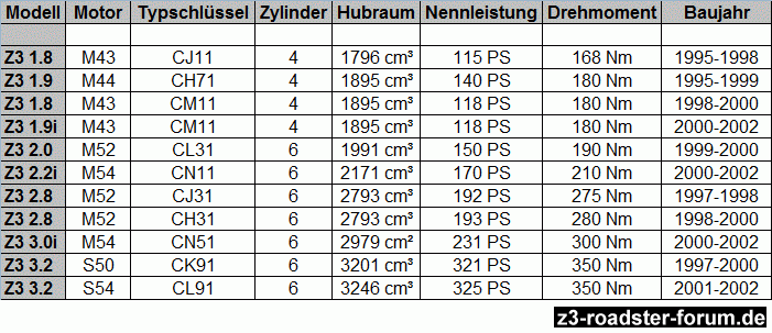 (Z3-Kaufberatung, Inspektion, Pflege, Statistiken, Versicherung, Werkstätten, Erfahrungsberichte, Literatur, Ausstattung, Typklassen, usw.)