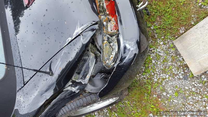 Die Karosse hat ordentlich was abbekommen, die Technik und der Innenraum sind soweit ich das bisher betrachten konnte unversehrt...