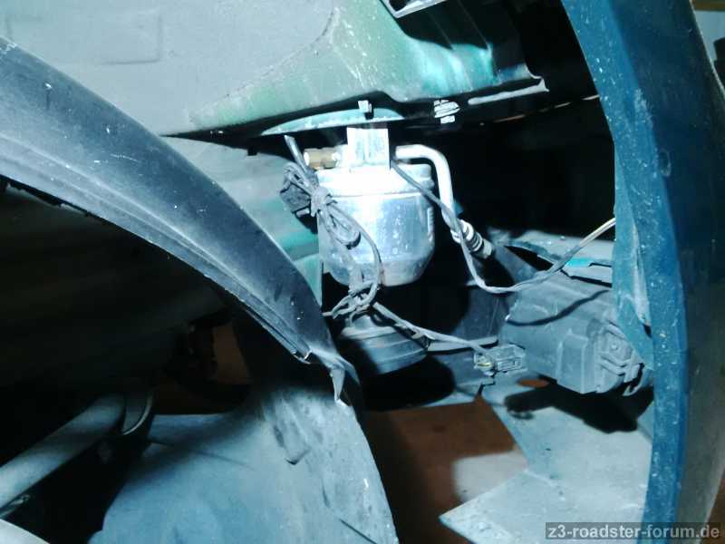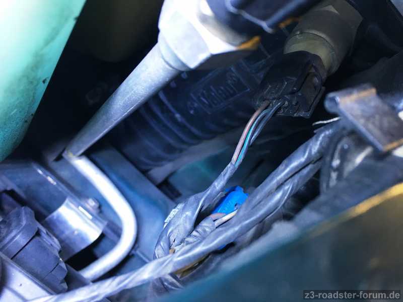 Weiß: Der Stecker zweigt direkt von der Pumpe für die Scheibenreinigung ab.