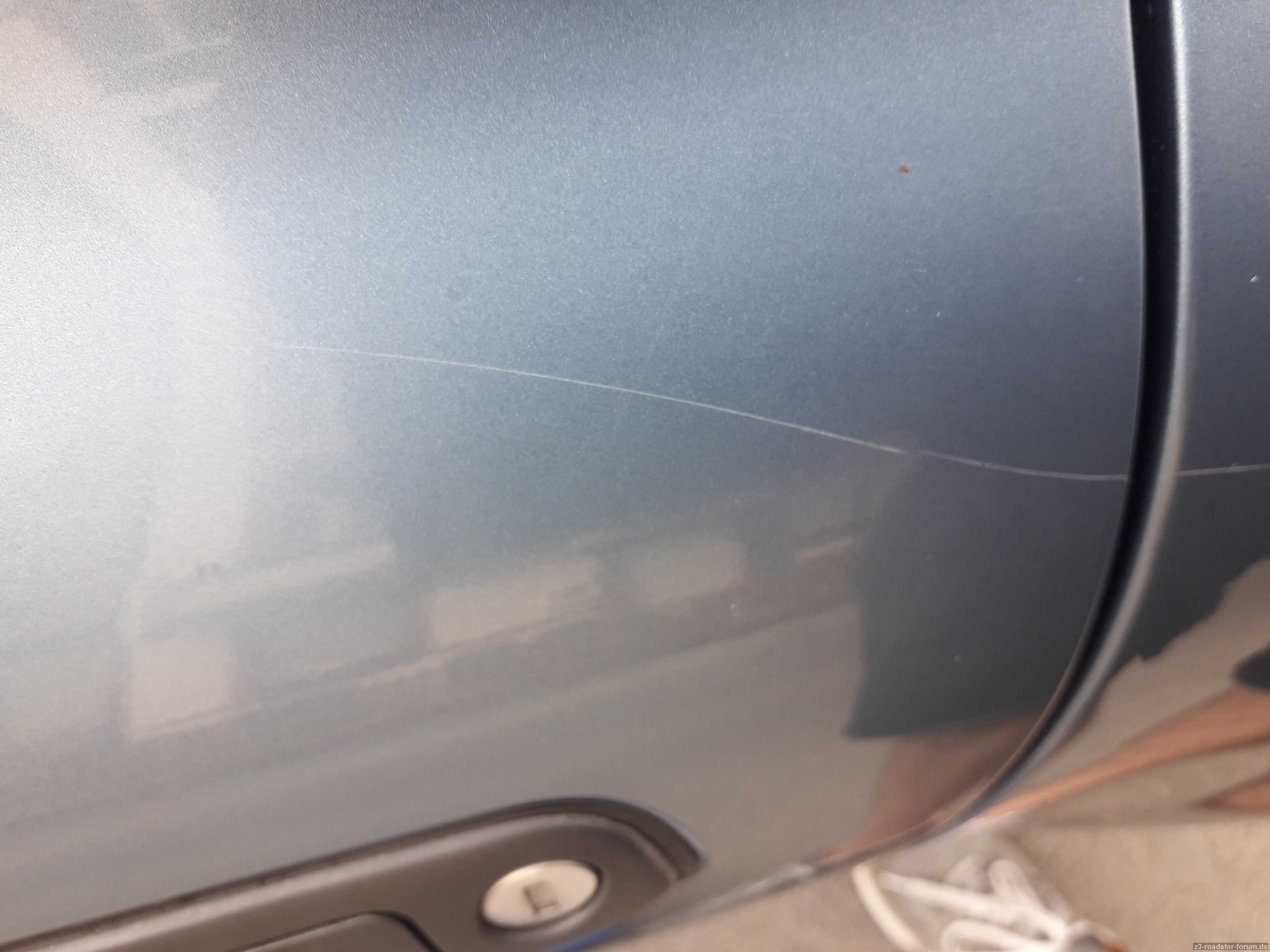 Wie in einem anderen Beitrag geschrieben, hat mir jemand Fahrertür + hinteren Kotflügel zerkratzt - vermutlich der Klassiker: mit einem Schlüssel.
