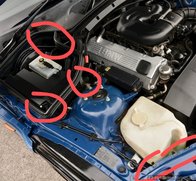 bei unserem Z3 Zusammenbau benötigen wir noch Unterstützung bei den Schrauben. Kann uns jemand bei folgenden Positionen Bilder hochladen damit wir die Richtigen Schrauben nutzen um die rechte Seite im Motorraum zu komplettieren?