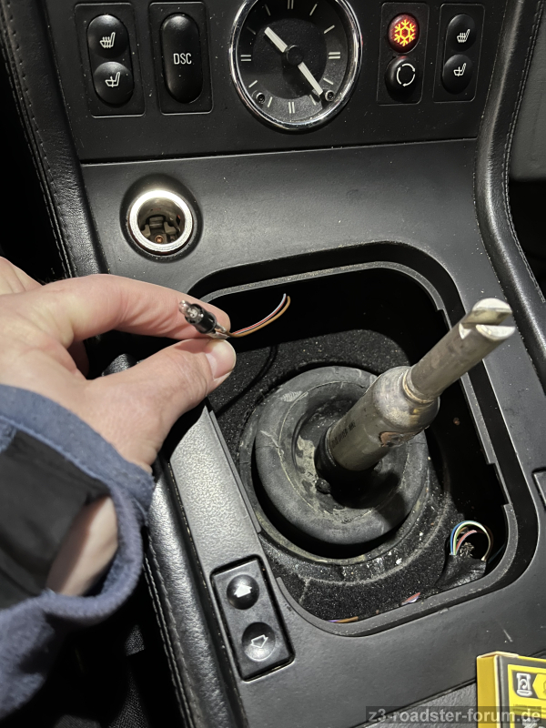 Ich vermute, es ist die Beleuchtung der 12V Steckdose? Aber dort habe ich keinen Fassung gefunden, wo man Sie reinstecken kann....