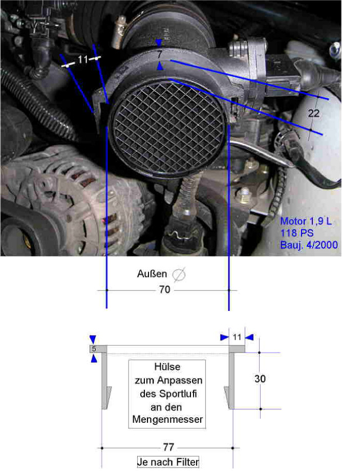 Der Grund -> BMW verbaute ein Drosselklappenteil mit viereckigen Auslass zur Luftfilterbox. Der Performance kit für die 1,9 er Version