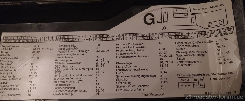 Als nächstes hier im Forum die Schaltpläne geprüft und für mein Auto 1.9i von 2001 sollte diese eigentlich auch über die Sicherungen 13, 16 und 48 abgesichert sein. Passt auch perfekt mit diesem Thread hier zusammen: https://www.z3-roadster-forum.de/forum/viewtopic.php?f=18&t=21845&p=185388&hilit=temperaturschalter#p185388