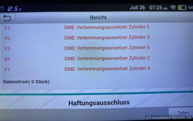 Fehlerspeicher gelöscht, Dach auf und bei bestem Wetter eine Runde gedreht. Nach ca. 70km kam nach einem kurzen Stop plötzlich wieder die MKL. Fehlerspeicher ausgelesen und folgendes bekommen: