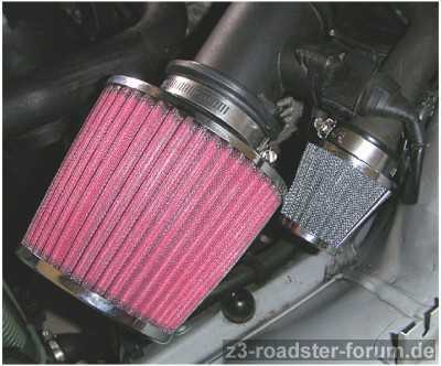 Nun ist meine Frage, ob es etwas "passiert, wenn ich statt dem Schlauch einen kleinen Luftfilter montiere (siehe Bild; das runde Ding unter dem Haupt-Ansaugschlauchschlimm). Kennt sich hier jemand aus?