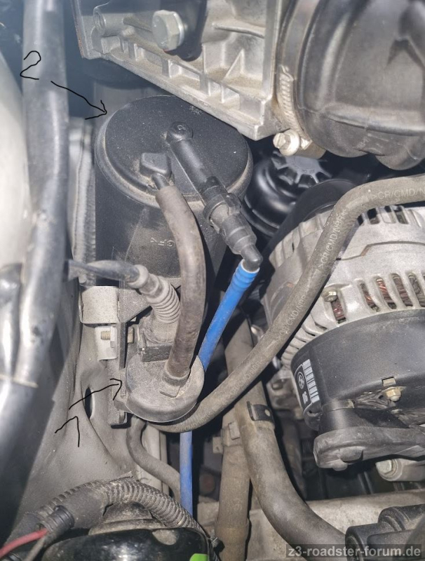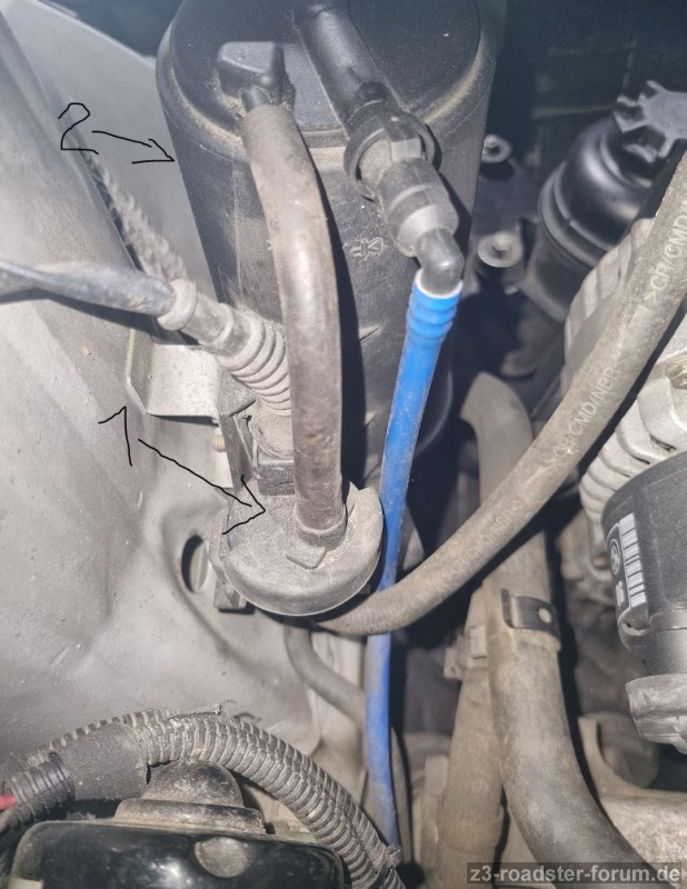 Hab tatsächlich nun das Ventil (1) und den Aktivkohlefilter (2) im Motorraum aufgespürt.