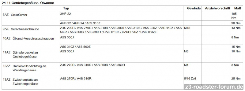 Der Vollständigkeitshalber gibt es für alles ein Drehmoment aber leider bringen die Angaben überhaupt nichts und die Erfahrungen von Oldscool und Eisi bringen einen weiter. Leider ist nicht ersichtlich ob man nach der 3AZ Öleinfüll- und Ablaßschraube mit Dichtring oder 9AZ Öleinfüll- und Ölablaßschraubemit O-Ring an Deckel / Gehäuse beim Hinterachsgetriebe arbeiten muss. Oder hat einer von euch zu diesem Thema noch Ergänzungen? Vor Ort nach der Situation beobachten ob man einen O-ring oder Dichtring hat ?