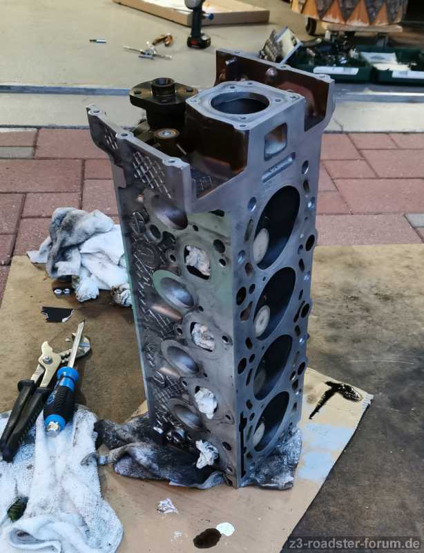 Das Krümmergewinde hab ich mit einem Helicoil repariert. Dann dem Zetti mal ordentlich den Kopf gewaschen