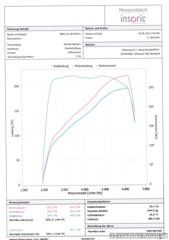 Hätte nicht gedacht, dass doch knappe 30PS Mehrleistung auf dem Papier stehen. Die originalen Teile vom M54B30 (Ansaugbrücke, Einlassnockenwelle, Einspritzdüsen, Auspuffanlage) haben mich im gebrauchten Zustand ca. 300€ gekostet. Da ich aber selbst kein Schrauber bin, kamen für mich noch die Einbaukosten und Kleinmaterial hinzu (ca. 700€). Die individuelle Abstimmung bei Sven hat sich definitiv gelohnt
