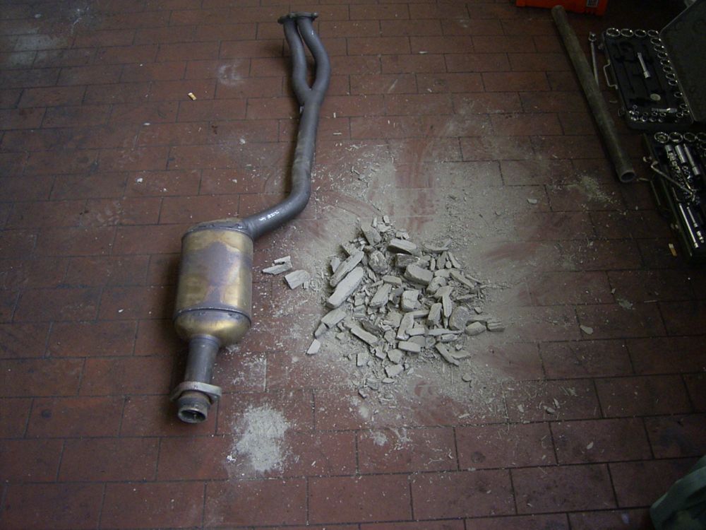 Gestern kroch ich nun unters aufgebockte Auto, um den Defekt zu orten, und es ist eindeutig der Kat. Wenn man daran rüttelt, hört es sich an als wären lauter zerbrochene Glasscherben drin.