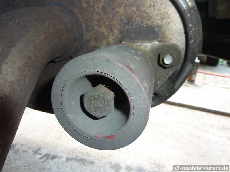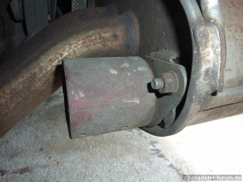 Dabei ist mir aufgefallen das am Auspuffendtopf noch ein Stutzen hinten drann ist. Im Stutzen ist eine Schraube.