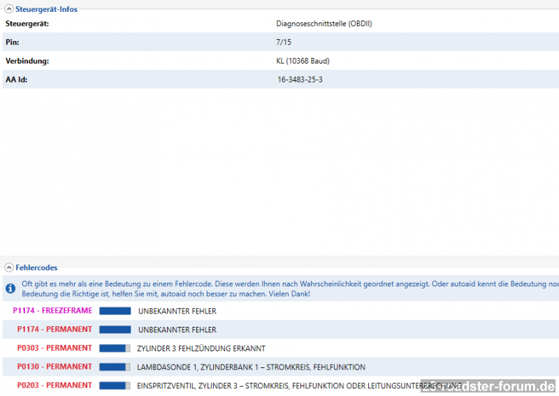 :idea: such dir jemanden in der Nähe oder du kannst es selber: Fehlerspeicher auslesen (lassen) - aber lass den Motor aus :!: