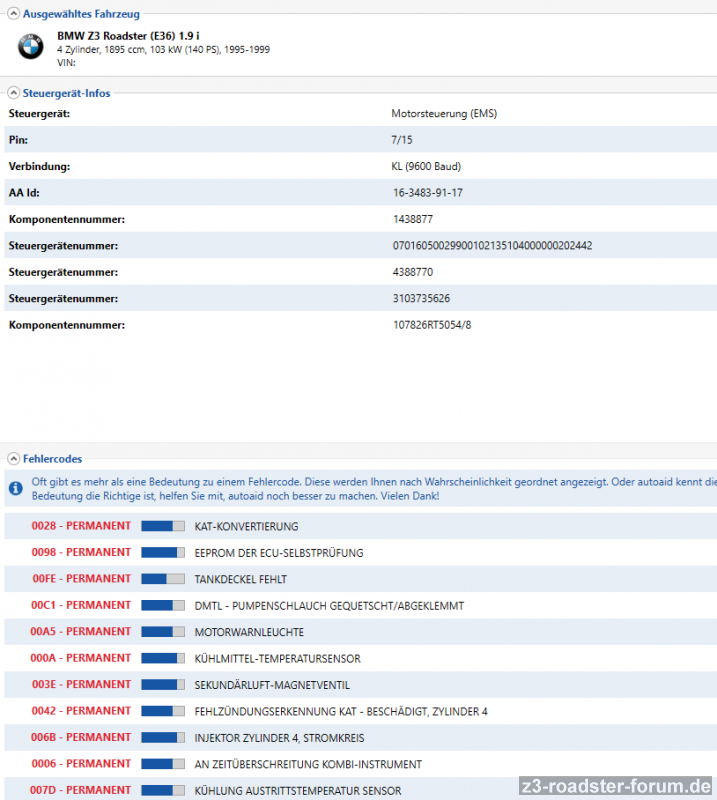 Der Tipp mit dem ADAC ist sehr gut. So kommst du zu einer kostenlosen Ersteinschätzung vom Fachmann. Ein guter kann sogar am Z3 Fehler auslesen.