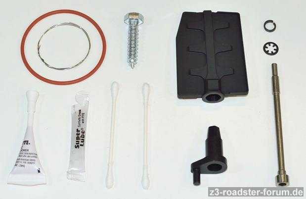 Das nenne ich mal vollständig, die Holzschraube ist zum Entfernen des alten Hebels und das Silberne im O-Ring ist ein Draht, um einen Hebel zu Seite zu binden. Wenn man sparsam ist, hat man sogar ein Wattestächen übrig