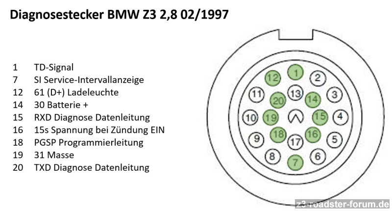 ich habe ein Problem mit der Diagnosesteckdose an meinem VFL 2,8 aus 02/97. Vor einiger Zeit hat die Kommunikation mit diversen Diagnosegeräten noch wunderbar funktioniert, leider komme ich in kein Steuergerät mehr rein. Nach einiger Suche bin ich auf ein Problem an der Diagnosebuchse gestoßen. Spannung, Masse, Zündplus funktioniert einwandfrei. An der RXD Datenleitung (Pin 15) habe ich >12V anliegen und bei ausgeschalteter Zündung einen hochohmigen Widerstand gegen Masse. An der TXD Datenleitung (Pin 20) habe ich 0V und ca. 30 Ohm. Es scheint, als würde irgend etwas die Spannung der TXD Leitung gegen Null ziehen. In Netz habe ich ein paar Berichte in anderen BMW Foren gefunden, scheint also kein Einzelfall zu sein. Hattet von euch schon jemand so einen Effekt und kann mir Tipps geben, wie ich den Fehler eingrenzen kann?