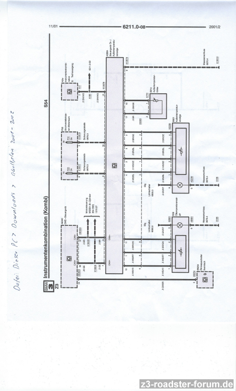 Aus dem Schaltplan, den Du übrigens HIER auch in vollem Umfang und Auflösung findest (Seite 236), geht leider nicht hervor, wie die Instrumente letztlich vom Steuergerät angesteuert werden. Ich kann nur mutmaßen, dass es Kreuzspulinstrumente sind, und diese direkt vom Steuergerät angetrieben werden. Das selbst nachzubilden.... viel Spaß. Ich bin seit 1 1/2 Jahren dran zwecks Öltemperatur im Kombiinstrument ala M3.... :enraged: Bislang erfolglos.