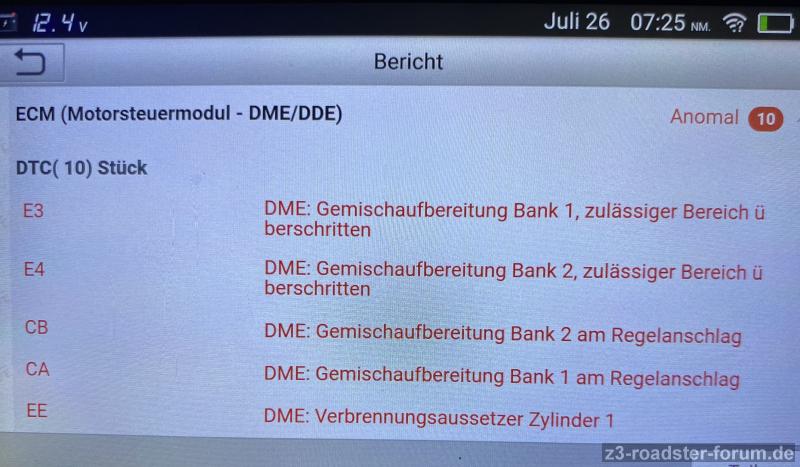 Fehlerspeicher gelöscht, Dach auf und bei bestem Wetter eine Runde gedreht. Nach ca. 70km kam nach einem kurzen Stop plötzlich wieder die MKL. Fehlerspeicher ausgelesen und folgendes bekommen: