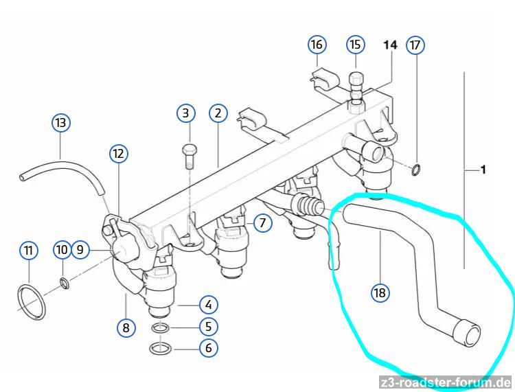 Gestern habe ich bei einer Falschluft-Suche mit meiner Nebelmaschine festgestellt, dass von jedem Einspritzventil zusätzlich ein Gummischlauch abgeht. Diese Schläuche sind recht hart, weshalb ich befürchte, dass sie beim Ausbau der Einspritzventile kaputtgehen werden.
