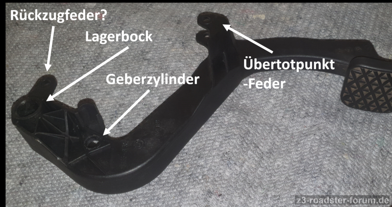 während der Lagerwechsels der Pedalerie ist mir aufgefallen, dass keine Rückzugfeder beim Kupplungspedal verbaut ist. Entsprechend der umliegenden Teile und nicht vorhandenen Spuren erschien das zunächst auch ab Werk so (Dez 1997, 2.8 ).
