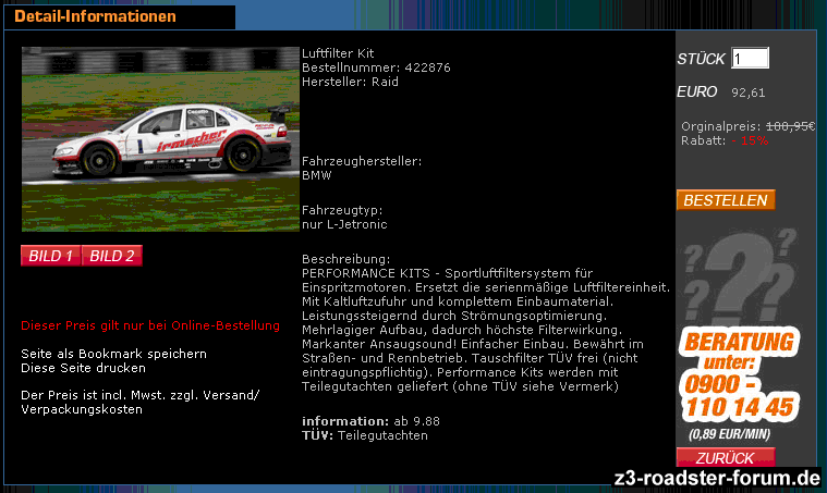 PS: Ein Tauschfilter oder offener K&N kann sich auch bei der Inspektion rechnen (sofern du deinen Zetti etwas länger fährst