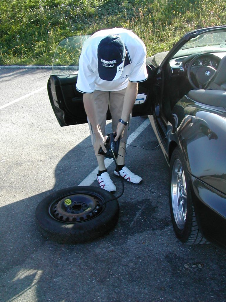 .... mit letzter Kraft des Kompressors wenigstens 3 BAR aufs Notrad .... ;-)