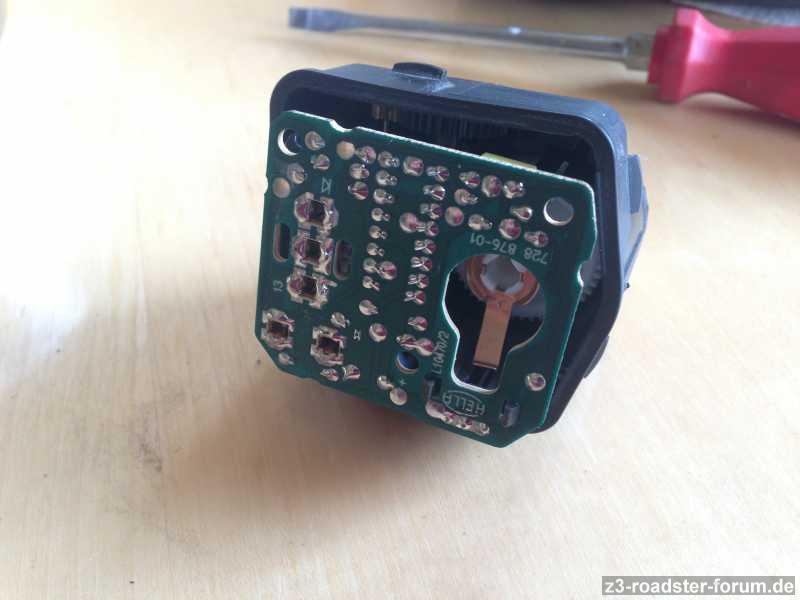 der war viel zu weit rausgedreht ---> Platine raus, am Motor gedreht bis die Schrauben vorne wieder ganz eingefahren war.